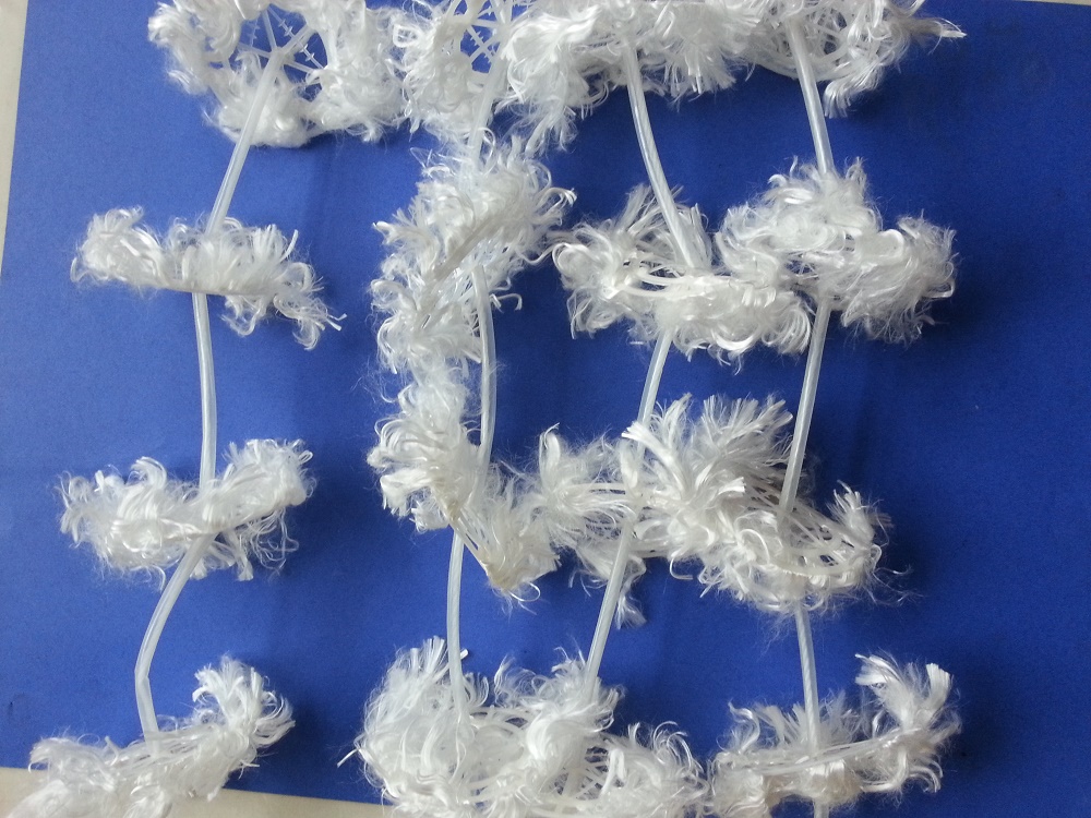 組合型填料有纖維束 塑料片 套管 中心繩組成,特點(diǎn)是不堵塞 不團(tuán)結(jié) 比表面積大 掛膜迅速,使用壽命長(zhǎng),耐高負(fù)荷沖擊,充氧性能好。