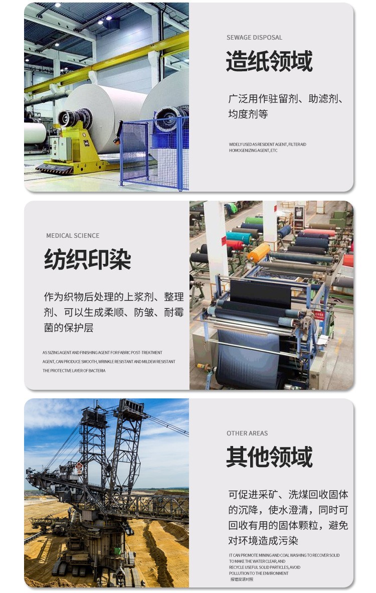 PAM陽離子高分子化合物,具有多種活潑的基團。與多種物質(zhì)親和,吸附。常用于 城市污泥 造紙廠污泥 等工業(yè)污泥脫水處理中。